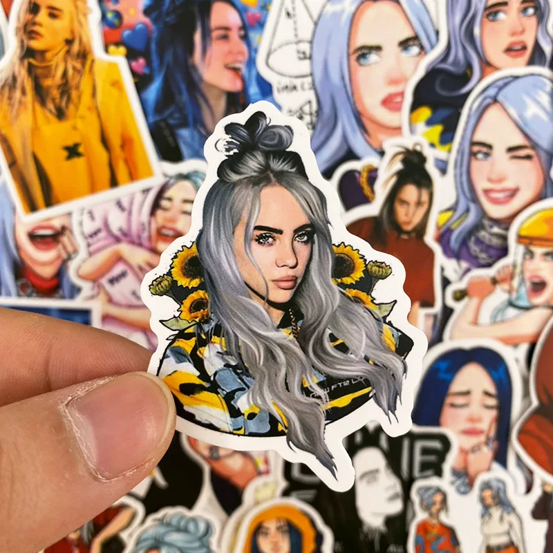 TD ZW 50 Pcs Stickers Pack Billie Eilish Stickers on laptop Refrigerator Guitar Skateboard Cup Book DIY Lovely Cartoon Stickers