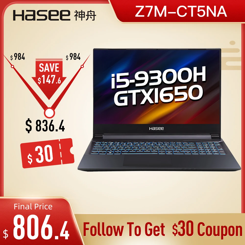 Best Price Comparison With Hasee Z7M-CT5NA/CT7NA Laptop for Gaming(Intel i5-9300H/i7-9750H+GTX1650 4GGDDR5/8G RAM/512G SSD/DOS/15.6''IPS)Hasee notebook