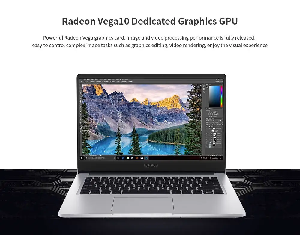 Xiaomi RedmiBook Laptop 14.0 inch AMD R7-3700U Radeon RX Vega 10 Graphics 16GB RAM DDR4 512GB SSD Notebook- Xiaomi RedmiBook is comming with the latest AMD R7-3700U CPUThe powerful Windows 10 operating system makes you easy to deal with daily work. Powered by the popular AMD Ryzen R7-3700U Quad Core processor, equipped with the updated Radeon RX Vega 10 Grapjics GPU, the amazing performance can make sure to run most productive softwares and games. Adopted in 14.0 inch IPS screen and 16GB GDDR4 RAM 512GB PCle SSD, that's the another new step of Xiaomi laptop with AMD for you !Main Features:1. Windows 10 OSWindows 10 brings back the popular Start Menu from Windows 7 and introduces new features, like the Edge Web browser that lets you mark up Website on your screen2. 14.0 inch IPS Screen with 1920 x 1080 ResolutionBoasts impressive color and clarity and IPS technology provides wide viewing angles3. AMD Radeon 7-3700U Quad Core Eight Thread 2.3GHz,up to 4.0GHz2400 MHz DDR4 and quad-core processing fully meet your needs of Offices, designs and game playing4. Radeon RX Vega 10 Grapjics GPUOn-processor graphics with shared video memory provide high image quality for daily use5. 16GB DDR4 RAM for Advanced MultitaskingSubstantial high-bandwidth RAM to smoothly run your game, photos and video-editing applications, as well as multiple programs and browser tabs all at once6. 512GB PCle SSD Storage CapacityProvides room to store pictures, videos, music and faster to run softwares7. Dual Band 2.4GHz / 5.0GHz WiFiAllows you to connect to the Web while within range of an available wireless network8. Fn+K Performance mode switchingOffer you a two modes to enjoy, no matter you are playing or working