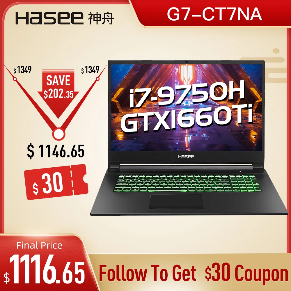 Hasee G7M-CT7NA Laptop for Gaming(Intel i7-9750H+GTX1650 4GGDDR5/8G RAM/512G SSD/DOS/17.3''IPS 72%NTSC)Hasee notebookBuy Now On Aliexpress